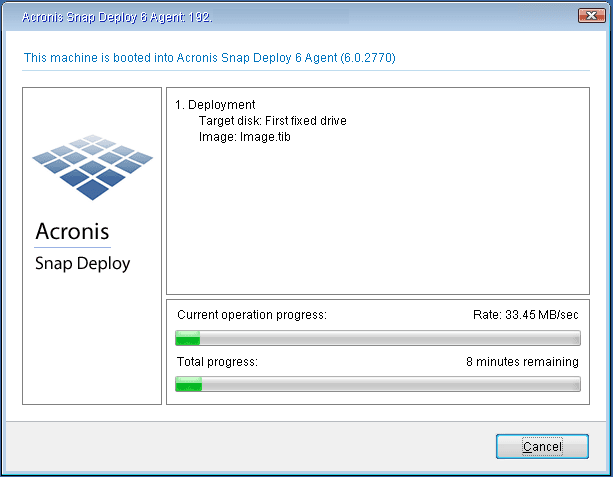 Wenn Sie für das benutzerinitiierte Deployment einen Acronis PXE Server einplanen, der gerade von laufenden Aktionen verwendet wird, müssen Sie diese entweder abbrechen oder warten, bis sie abgeschlossen wurden, bevor Sie fortfahren können. Siehe auch Überlegungen zur Verwendung eines PXE Servers.