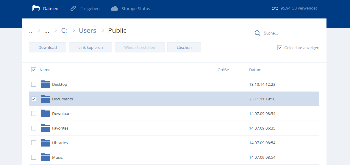So stellen Sie Dateien und Ordner aus der Acronis Cloud wieder her: