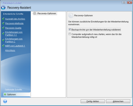 Bei einem Boot-Medium gibt es zwei Möglichkeiten, ein Backup zu validieren: