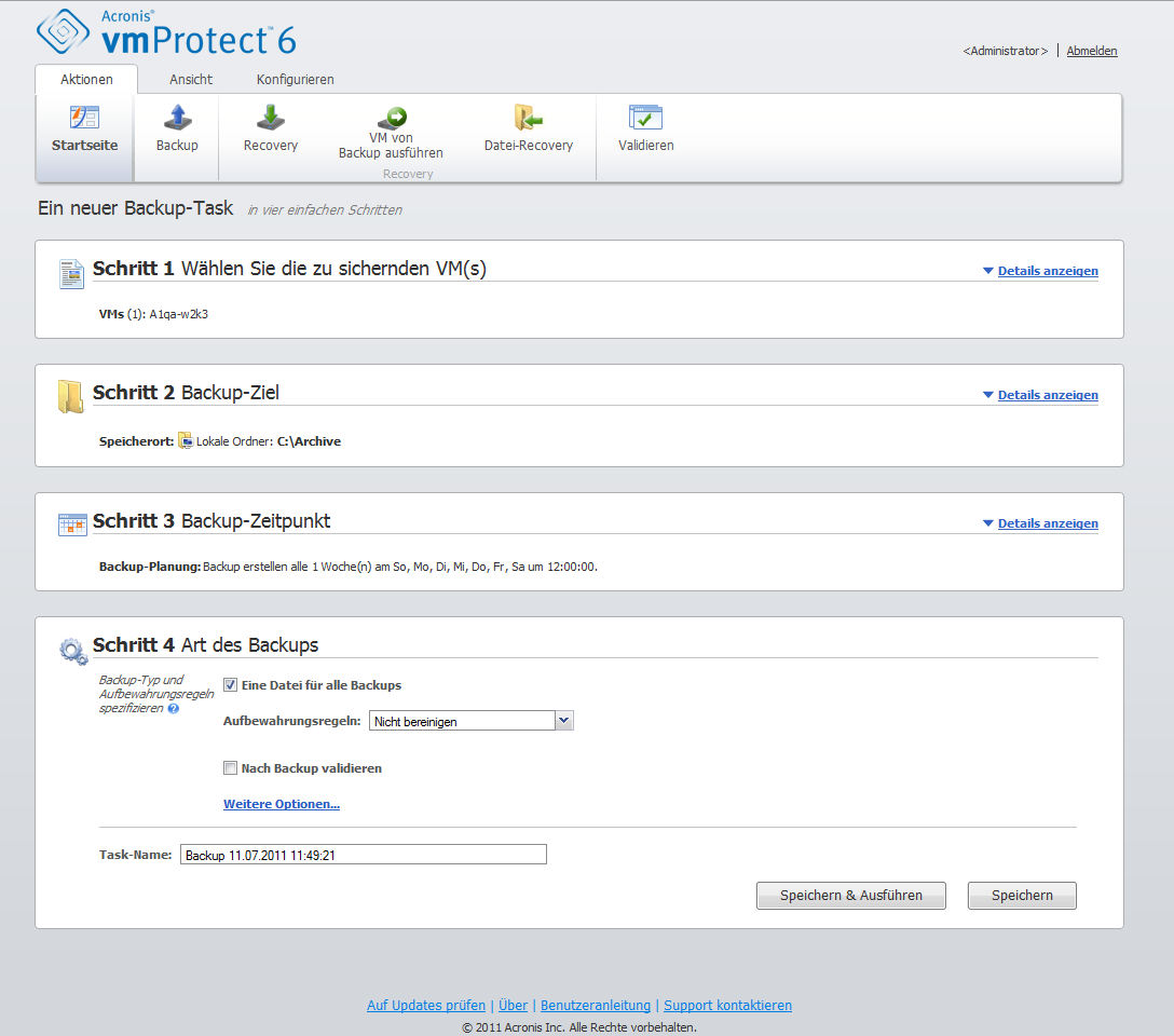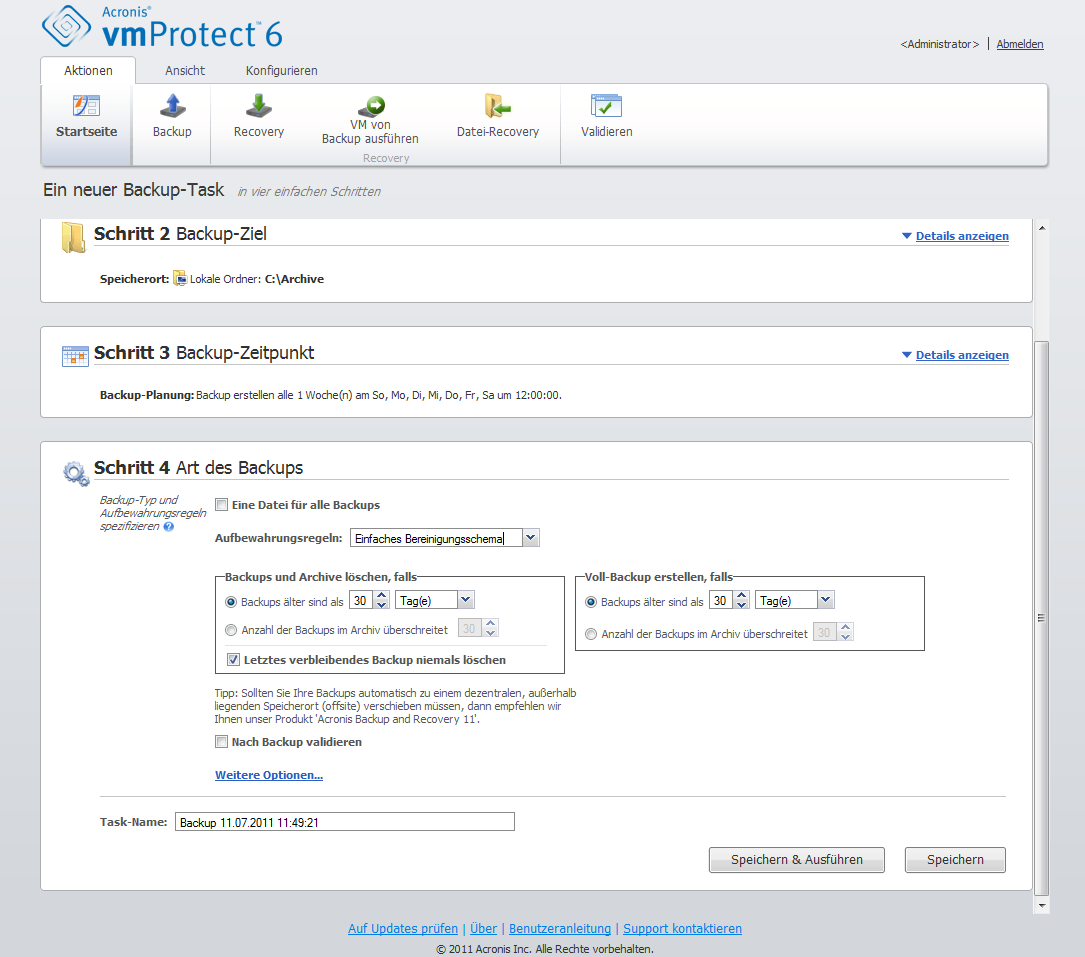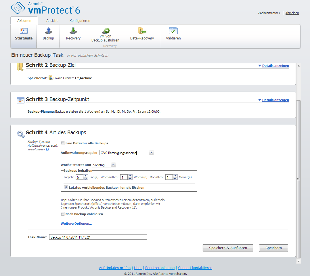 Wenn keine Aufbewahrungsregeln angegeben sind, erfolgt keine besondere Backup-Verwaltung, d.h. alle Backups werden unbegrenzt im Archiv gespeichert.