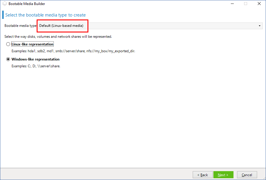 3. Wählen Sie den gewünschten Typ des Boot-Mediums: Standard (Linux-basiertes Medium).