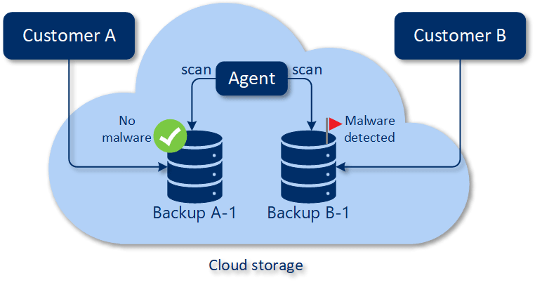 Mit einem Antimalware-Scan von Backups können Sie verhindern, dass infizierte Programmdateien (ausführbare Dateien) wiederhergestellt werden, indem Sie überprüfen lassen, ob Ihre Backups keine Malware enthalten. Antimalware-Scans werden von einem Cloud Agenten durchgeführt, der sich im Cyber Protection Datacenter befindet, sodass keine lokalen Computing-Ressourcen verwendet werden müssen.