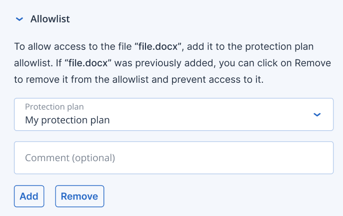 So können Sie einen Prozess, eine Datei oder ein Netzwerk zur Blockliste eines Schutzplans hinzuzufügen oder von dieser entfernen