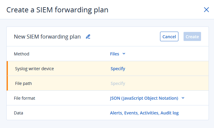 Wählen Sie die Methode für den SIEM-Weiterleitungsplan aus: