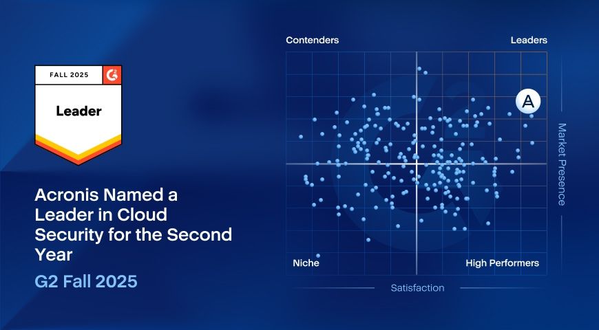 Acronis has once again been recognized as a Leader in cloud security. In G2’s Fall 2025 Cloud Security Grid® Report, Acronis Cyber Protect Cloud achieved the #1 ranking for the second consecutive year, underscoring continued market leadership. This recognition is based on G2’s independent methodology that combines verified user feedback with market‑presence indicators and reflects the experiences of thousands of users worldwide.