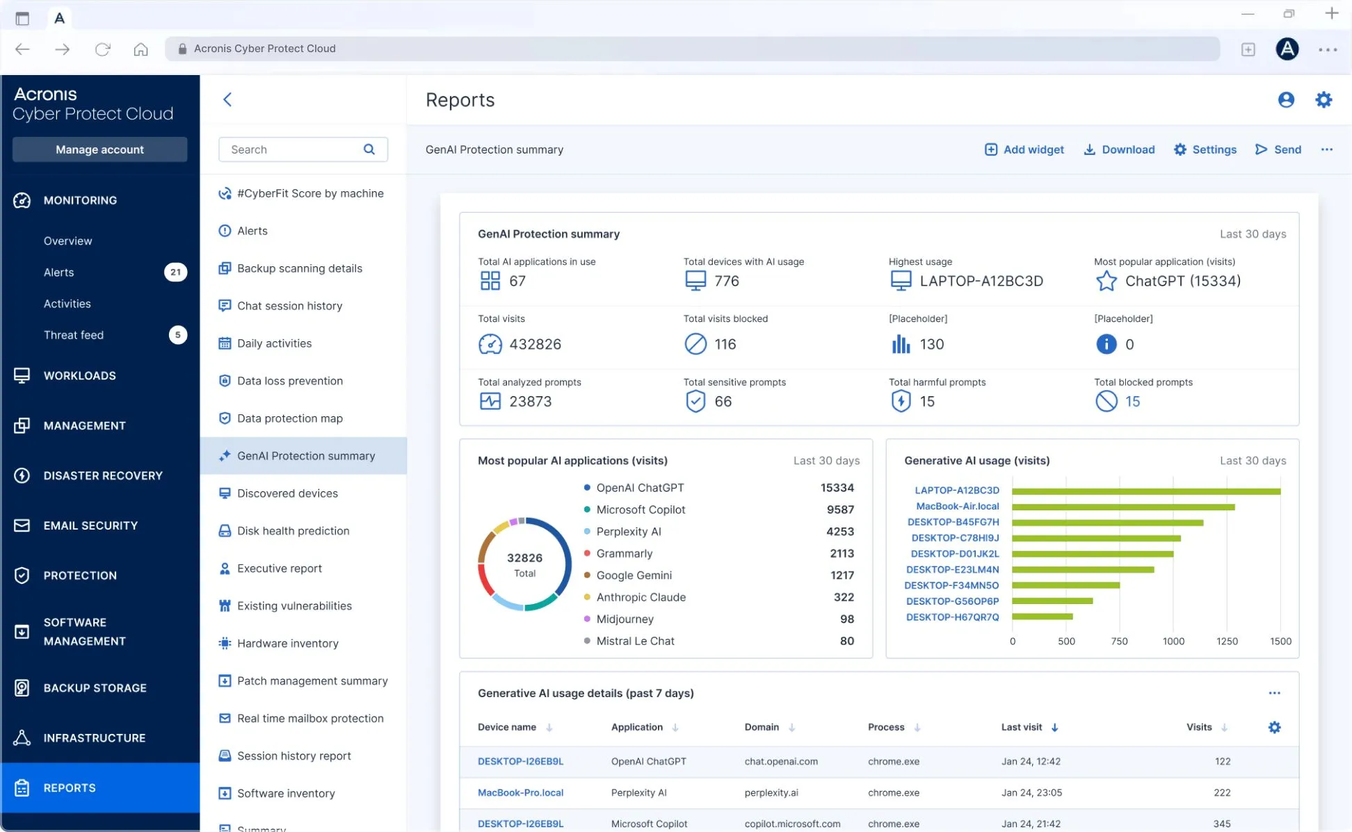 AI-powered Cyber Protection for productive MSPs, natively integrating operations management, cybersecurity and data protection in one platform.