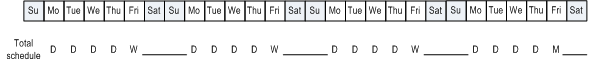 Assume you select Friday for Weekly/Monthly backup. Here is the total schedule marked out according to the selection.