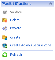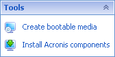 The Actions and tools pane enables you to easily and efficiently work with Acronis Backup & Recovery 10. The pane's bars provide quick access to program's operations and tools. All items of the Actions and tools bar are duplicated in the program menu.
