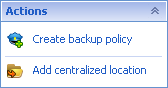 Contains a set of actions that can be performed on the items selected in any of the navigation views. Clicking the action opens the respective action page. Items of different navigation views have their own set of actions. The bar's name changes in accordance with the item you select. For example, if you select the backup plan named System backup in the Backup plans and tasks view, the actions bar will be named as 'System backup' actions and will have the set of actions typical to backup plans.