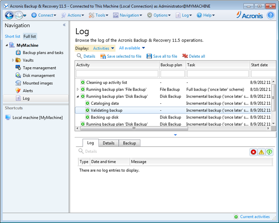 "Log" view