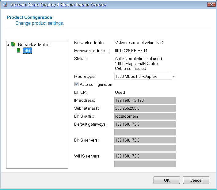 Acronis Snap Deploy 4 Master Image Creator configuration: network settings