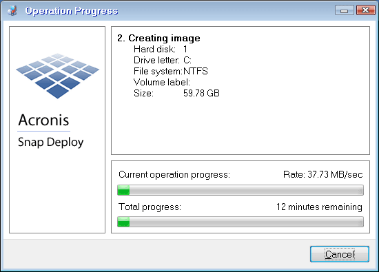 Acronis Snap Deploy 6 starts creating the image.