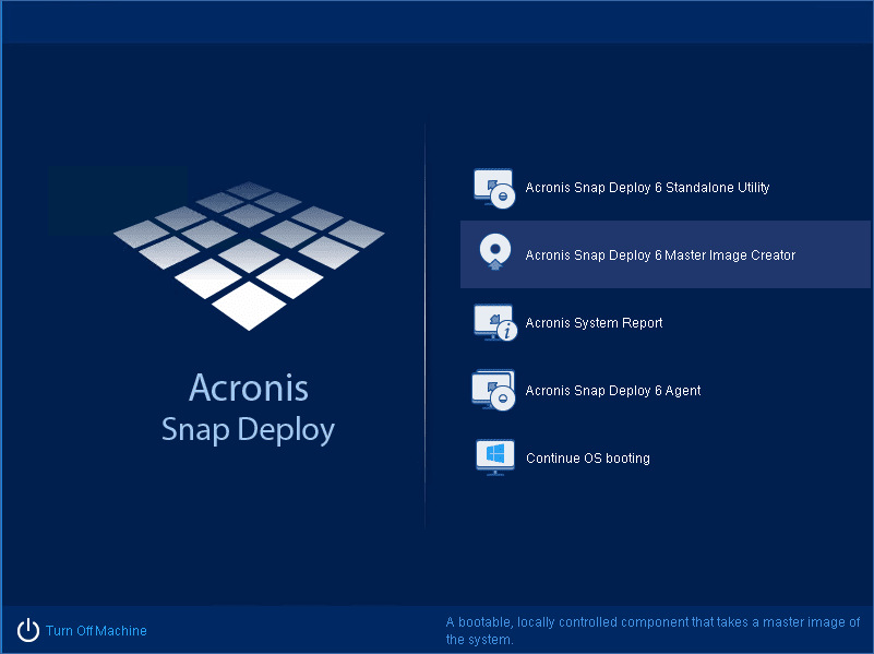4. On the boot menu, click Master Image Creator.