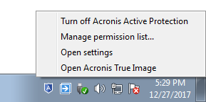 The Acronis Active Protection utility has its own icon in the taskbar notification area.