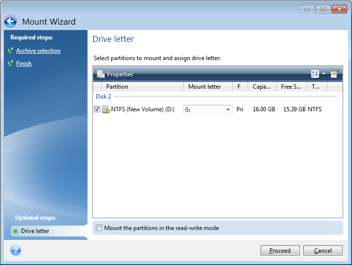 Please keep in mind that, though both file backups and disk/partition images have a default ".tib" extension, only images can be mounted. If you want to view file backup contents, use the Explore operation.