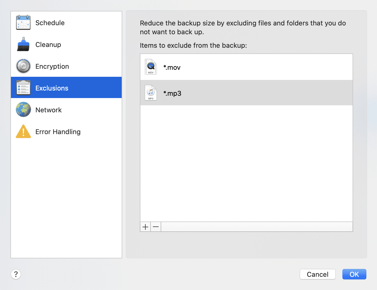 Before you start a backup, you can reduce the backup size by excluding data that does not need to be backed up.