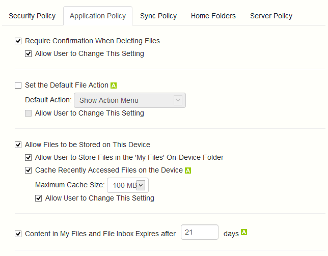 File Moves - If this option is disabled, the user will not be able to move files from one location to another on the Gateway Server, or from the server to the Access Mobile Client application's local My Files storage. This setting supersedes any NTFS permissions that client may have that allow file or folder moves.