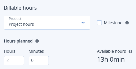 - In the Hours planned sub-section, define the number of hours and minutes the step should take. The number of hours should not exceed the displayed Available hours.