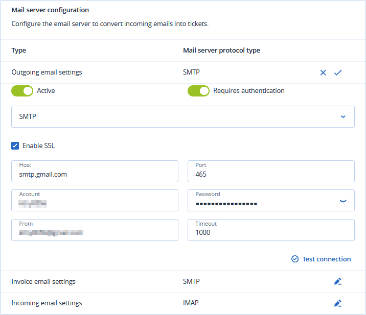 Click Test Connection to verify your outgoing email settings.