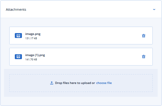 Add rich text descriptions and comments (including images and other media files, up to a maximum of 25 MB) in the text box. Any of the following formats and types can be added or dragged and dropped into the text box: