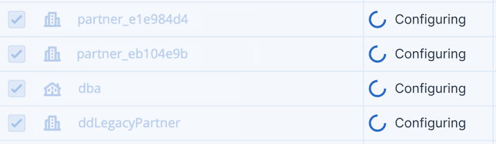 Click Apply changes. While the services are configured for each tenant, the tenant is disabled, and the Tenant status column indicates the services and offering items are currently being configured, as shown below.
