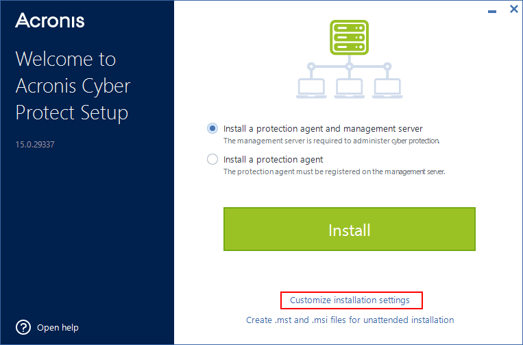 Depending on whether you install a management server and a protection agent, or a protection agent only, the following components are selected by default: