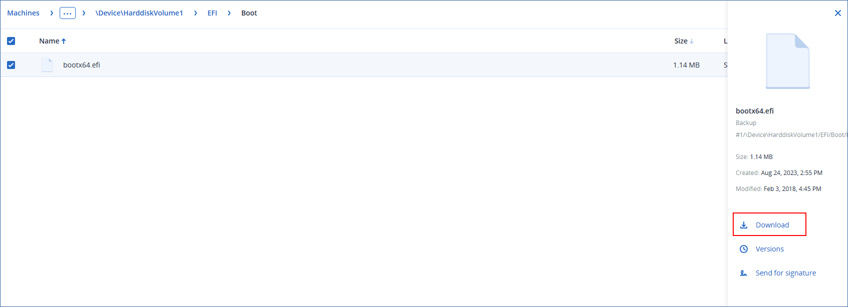 You cannot download backed-up disks, volumes, or whole recovery points.