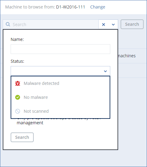 Scan the image backup for malware and mark the infected files. One of the following statuses is assigned to the backup: