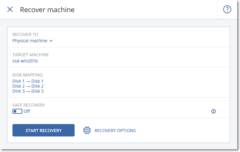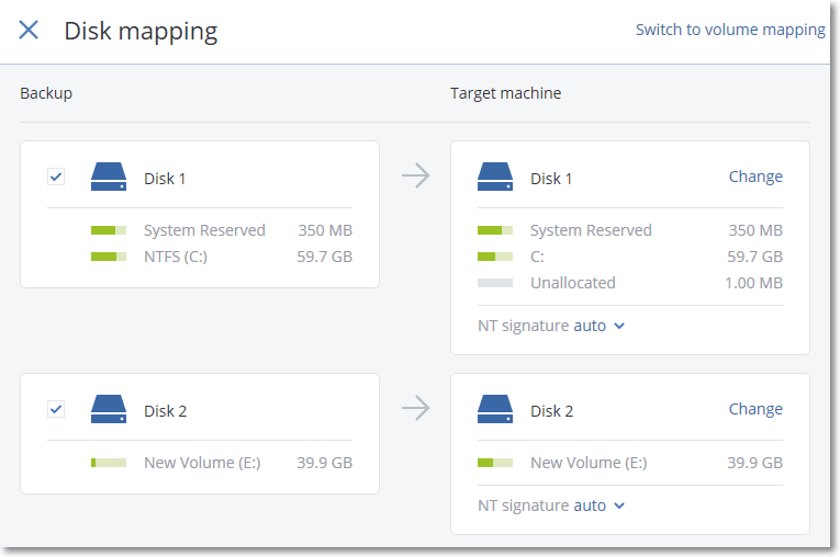 The software automatically maps the disks from the backup to the disks of the target machine.