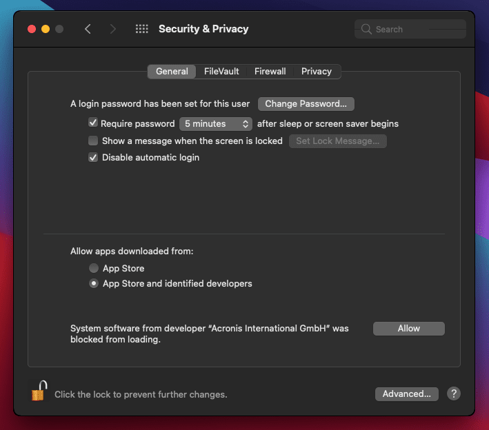 - In the Security & Privacy pane that appears, select App Store and identified developers and then click Allow.