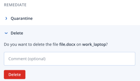 The file is deleted. This action can also be viewed in the Activities tabs of both the individual node and the entire incident. For more information, see Understand the actions taken to mitigate an incident.