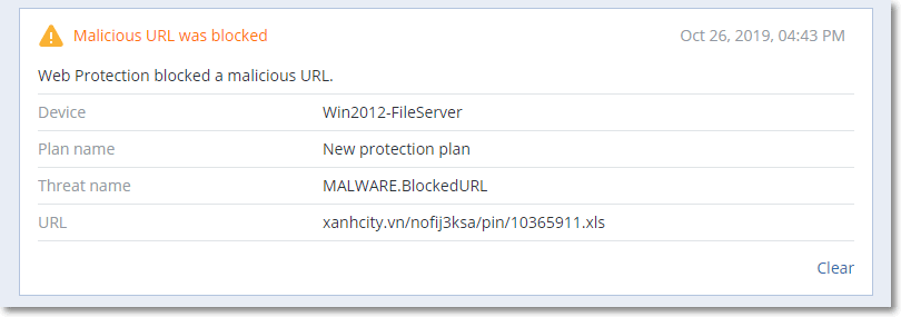- Block —blocks the access to the malicious website. A user will not be able to access the website and a warning alert will be generated.