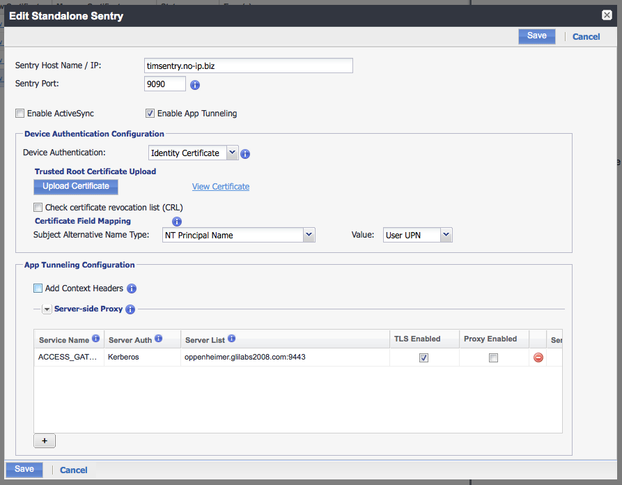 In the App Tunneling Configuration change the Server Authentication to Kerberos.