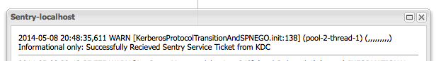 Find the line "Informational only: Successfully Received Sentry Service Ticket from KDC". This verifies the Sentry is able to reach and communicate with the KDC.