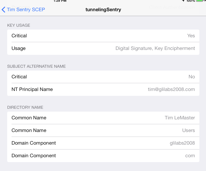 The changes we made to the SCEP must be pushed down to the iOS device. The changes we made to the Sentry can take several minutes to be pushed down to it.