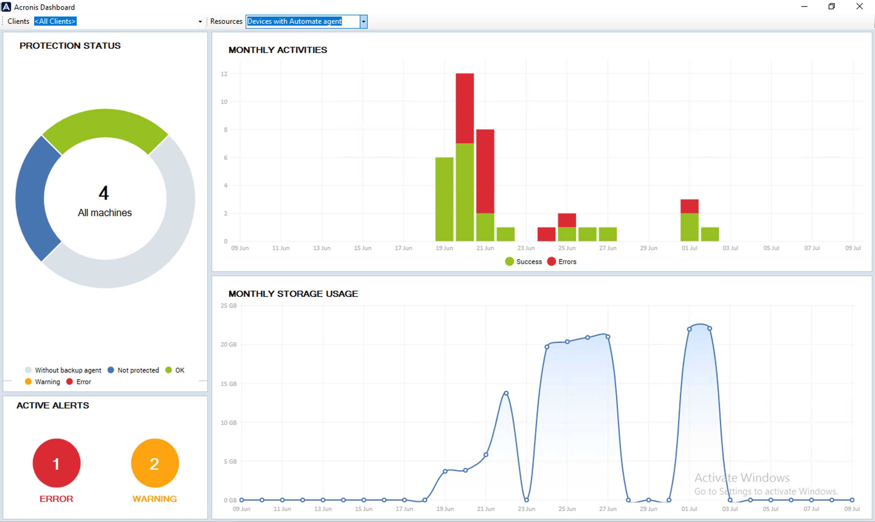 Monitoring with Acronis Dashboard