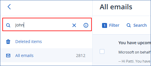 As a result, only emails that match the search query are listed.