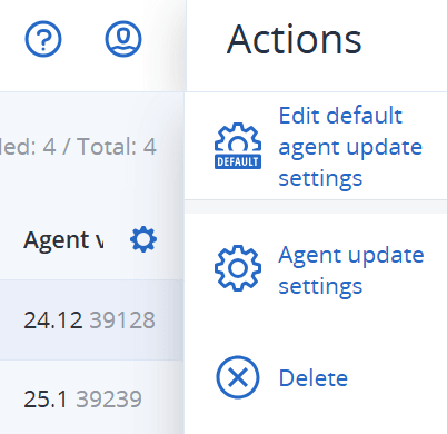 - In the upper-right corner, under Actions, click Agent update settings.