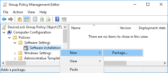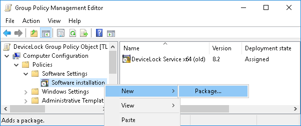 This step-by-step instruction describes how to use Group Policy to automatically distribute DeviceLock Service to client computers. DeviceLock Service can be deployed in an Active Directory domain using the Microsoft Software Installer (MSI) package DeviceLock Service.msi and DeviceLock Service x64.msi.