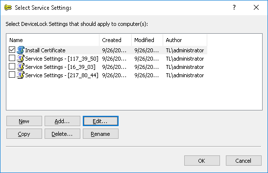 When DeviceLock Group Policy Manager is used, you don’t need to connect to any computer since it connects to the Group Policy Object. Also, you don’t need to connect to the computer when modifying the policy in the settings file using DeviceLock Service Settings Editor.