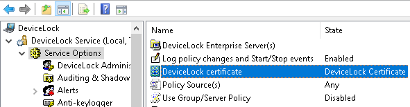 Certificate Name parameter description for DeviceLock Enterprise Server) and