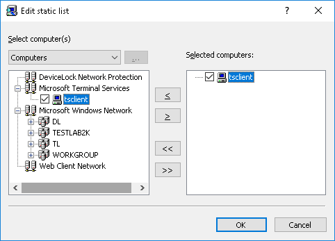 Computers that will be monitored should be specified in the right list. You have to select needed computers in the left list and then move them to the right list by clicking the