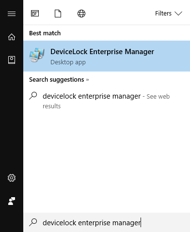 To open DeviceLock Enterprise Manager, find and select that app on the Windows start page: