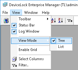 By default, DeviceLock Enterprise Manager displays information received from the plug-ins in the form of a tree. However, information can also be displayed as a plain list. To change the mode, point to View Mode on the View menu and click either Tree or List. Please note that View Mode must be set for each plug-in individually.