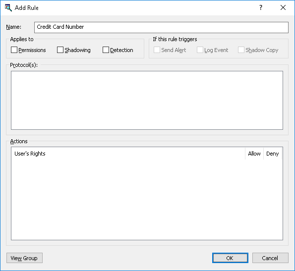 •Permissions, Shadowing, Detection - Specifies that the rule will apply to all available operations: access control, shadow copy, and detection.