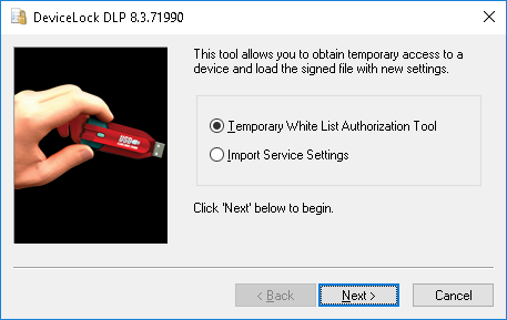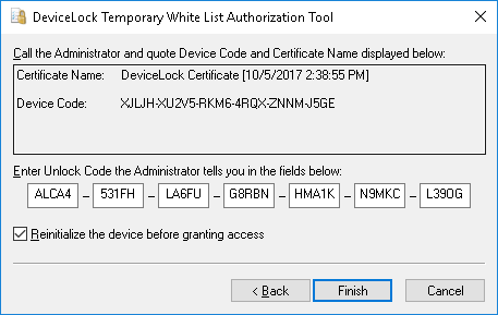 To obtain temporary access to a device, the user should run the DeviceLock applet in Control Panel and select the Temporary White List Authorization Tool option.