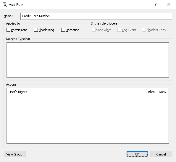 •Permissions, Shadowing, Detection - Specifies that the rule will apply to both access control and shadow copy operations, as well as to detection operations.
