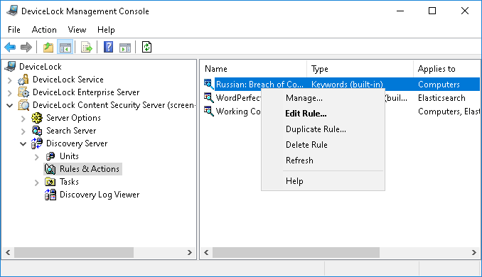 Configuring content detection rules in DeviceLock Discovery is similar to configuring content-aware rules in ContentLock. For details, refer to the
