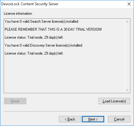 Installing DeviceLock : Installing DeviceLock Content Security Server : Perform Configuration and Complete Installation : License information