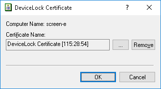 To install the key, click next to the Certificate Name field and specify the file that contains the public key of the desired certificate. To remove the key, click the Remove button. For details on DeviceLock certificates,
